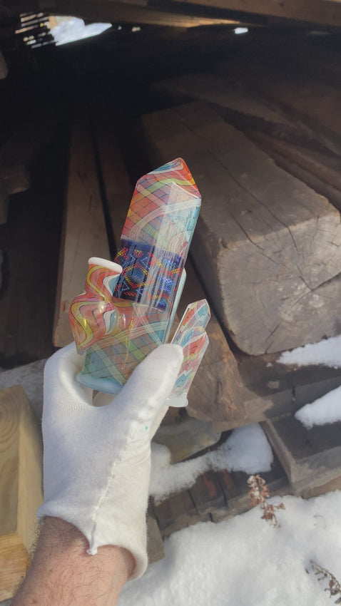 This culture cluster is a perfect representation of the excellent and precise line work of Adam Reetz to bring pipe art symbolism and design into a crystal cluster.
